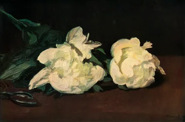 Zweig mit weißen Pfingstrosen und Gartenschere, 1864 von Édouard Manet