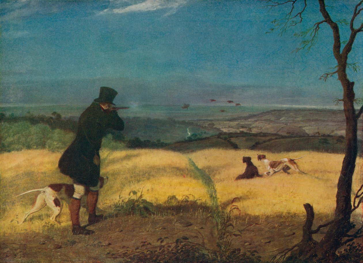 außen · draußen · tier · landschaft · leute · schwarzes · mann · sport · schauen · mann · männer · künste · vogel · vögel · hund · buch · kerl · rauch · aufpassen · kleidung · britisch · waffe · waffen · gewehr · gewehren · schießen · farbe · farbe · jagd · kleid · krieg · blutsport · abbildung · position · jahrhundert · großbritannien · ziel · zielen · jacke · literatur · genauigkeit · konzept · draußen · oberer hut · zwanziger jahre · eine person · zündung · kriegsführung · veröffentlichen · 19. jahrhundert · kampfmittel · zwanziger jahre · 20. jahrhundert · 19.jahrhundert · portrait · john · abraham cooper · publishing house · lane · cooper · abraham · tophat · john lane · black colour · bodley head · sparrow · british sporting artists · walter shaw sparrow · walter shaw · The Print Collector/Heritage Images