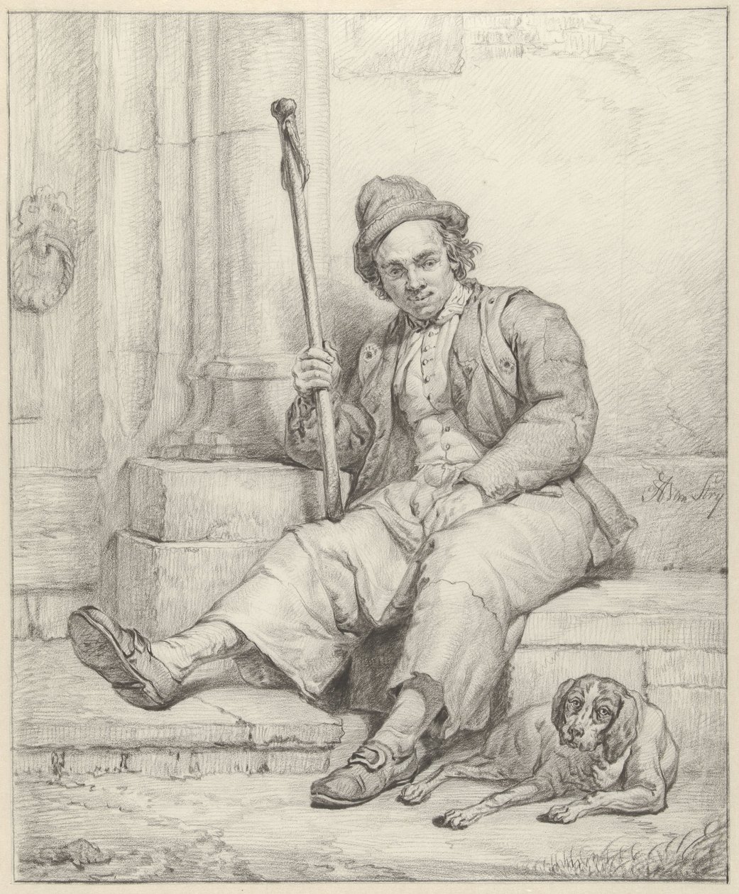 Sitzender Mann mit Hund(Zittende man met hond)Abraham van Strij (I)(draughtsman) |