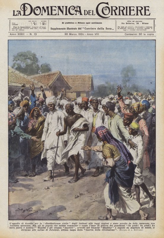 Gandhis Aufruf zum zivilen Ungehorsam der Inder gegen die englischen Gesetze wurde angenommen(Lappello di Gandhi per la disobbedienza civile degli indiani alle leggi inglesi e stato accolto ? )Achille Beltrame |