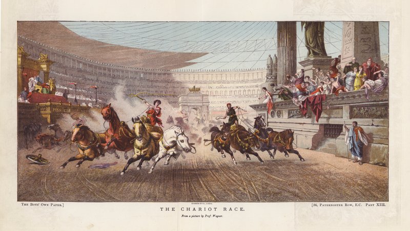 das wagenrennen · pferde · wagen · geschwindigkeit · altertümlich · römer · Rennen · Private Collection / Bridgeman Images · / Look and Learn |