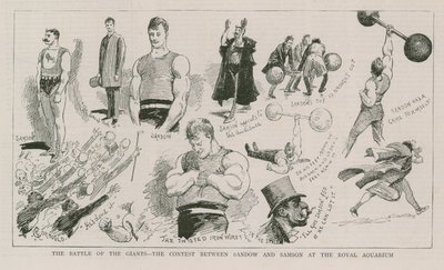 Der Kampf der Giganten, der Wettkampf zwischen Sandow und Samson im Royal Aquarium(The Battle of the Giants, the Contest between Sandow and Samson at the Royal Aquarium )Alfred Chantrey Corbould |