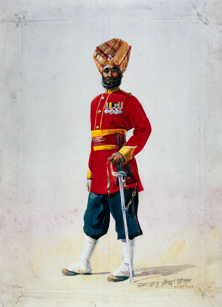 Soldat der 35. Sikhs, Subadar, Illustration für 'Armeen von Indien' von Major G.F. MacMunn, veröffentlicht 1911, 1908(Soldier of the 35th Sikhs, Subadar, illustration for 'Armies of India' by Major G.F. MacMunn, published in 1911, 1908 )Alfred Crowdy Lovett |