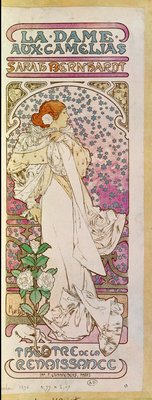Plakat für „Die Kameliendame“ im Renaissance-Theater mit Henriette Rosine Bernard genannt Sarah Bernhardt (1844-1923) - von Mucha(Poster for “La dame au camélias”” at the Renaissance Theatre with Henriette Rosine Bernard dit Sarah Bernhardt (1844-1923) - by Mucha)Alphonse Mucha |