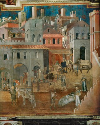 Gebäude in der Stadt(Buildings in town (mural painting))Ambrogio Lorenzetti |
