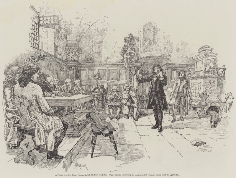 eine geige · one tune · re francillon · lorenz · gestartet · herz · stand auf · signor giardini · spielen · identisch · melodie · unzeitgemäß gemacht · nacht · musiker · violinen · erwägungsgründe · Private Collection / Bridgeman Images · / Look and Learn |