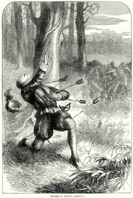 Mord an Whites Assistent, Illustration aus Cassells Geschichte der Vereinigten Staaten, veröffentlicht von Petter & Galpin ca. 1890(Murder of White"s assistant, illustration from Cassell"s History of the United States pub. by Petter & Galpin c.1890)American School |