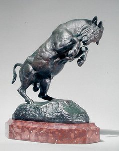 Die verwundete Amazone, 1839 Sigurd mit Ring Karl VI. im Wald von Le Mans, 1833 Pferd von einem Tiger überrascht Löwe greift Pferd an, ca. 1580/90 Reiter Hirsch von zwei Windhunden erlegt Wagenlenker (Bronze) Cheval Turc, 1920 Steigendes Pferd, modelliert ca. 1870er, gegossen 1919-21 Der Bronco-Buster Paar Zugpferde (Bronze) Das steigende Vollblut und der Stallbursche Ruggiero und Angelica Theseus kämpft gegen den Zentauren Bienor Aufbäumender Stier Der Bronco Buster Der verwundete Bunkie Pferd ohne Sattel; Cheval sans Selle, ca. 1915 Pferd ohne Sattel, ca. 1915 Der Gesetzlose Frischer Jäger Der Bergmann Bronco Buster Känguru und Hund Arabischer Falkner zu Pferd Der Bergmann Känguru und Hund Bellerophon tötet die Chimäre