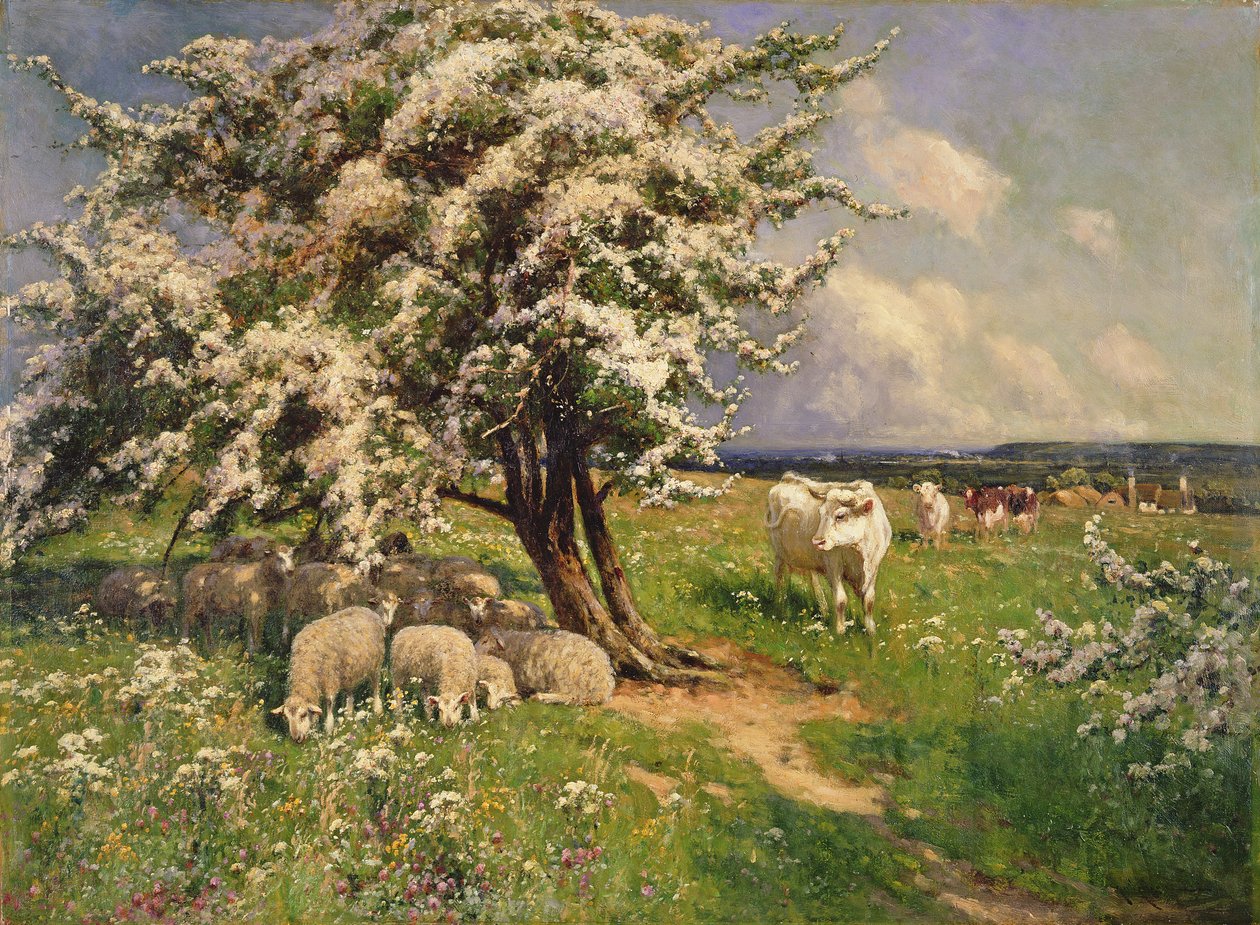 frühling · blüte · kühe · schatten · feld · landschaft · ländlich · landwirtschaft · Private Collection / Bridgeman Images |