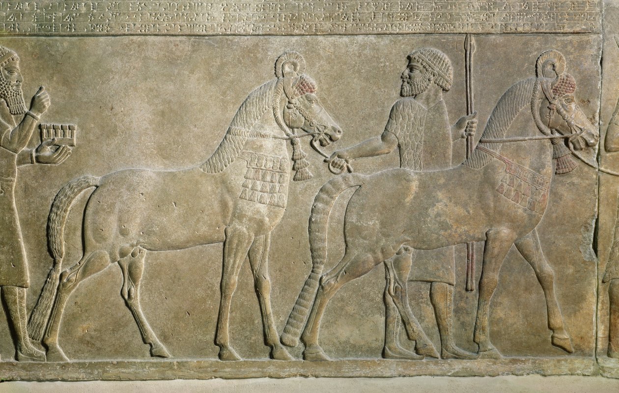 speere · soldaten · pferde · assyrien · tribut · geschenke · opfer · pferd · opfer · soldat · speer · tributaire conduisant des chevaux · führen · wende · zaumzeug · feder · skulptur · schnitzerei · keilschrift · text · Louvre, Paris, France / Bridgeman Images |