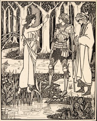 Die Dame vom See erzählt Arthur vom Schwert Excalibur(The Lady of the Lake Telleth Arthur of the Sword Excalibur,1894 (engraving))Aubrey Beardsley |