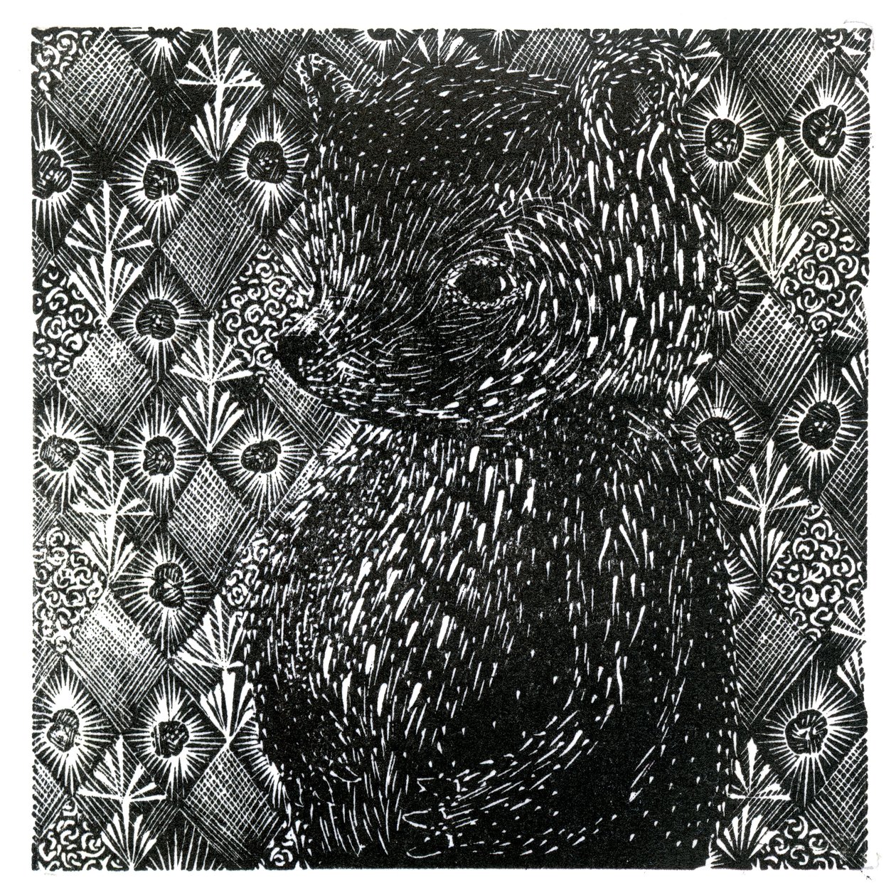 Ursus arctos ssp. domesticus, 2013 (Holzschnitt auf Papier)(Ursus arctos ssp. domesticus, 2013 (wood engraving on paper))Bella Larsson |