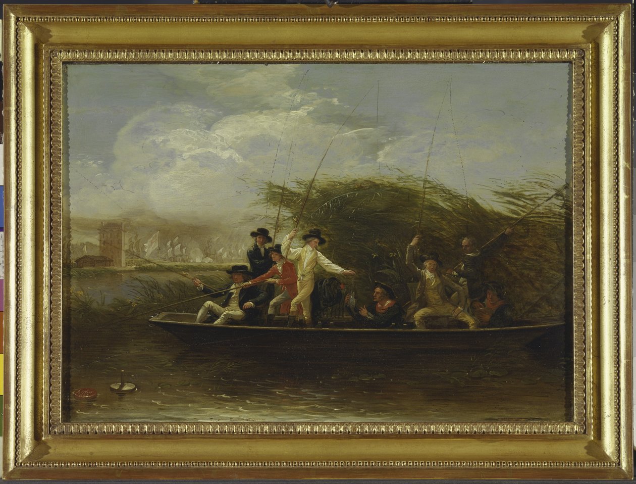 Die Angelgesellschaft - eine Gesellschaft von Herren beim Angeln von einem Kahn, 1794(The Fishing Party - a Party of Gentlemen fishing from a Punt, 1794 (oil on slate))Benjamin West |
