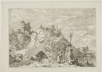 Landschaft mit dem Pilger im Gebet (oben links)(Landscape with the Pilgrim at Prayer [upper left])Canaletto |