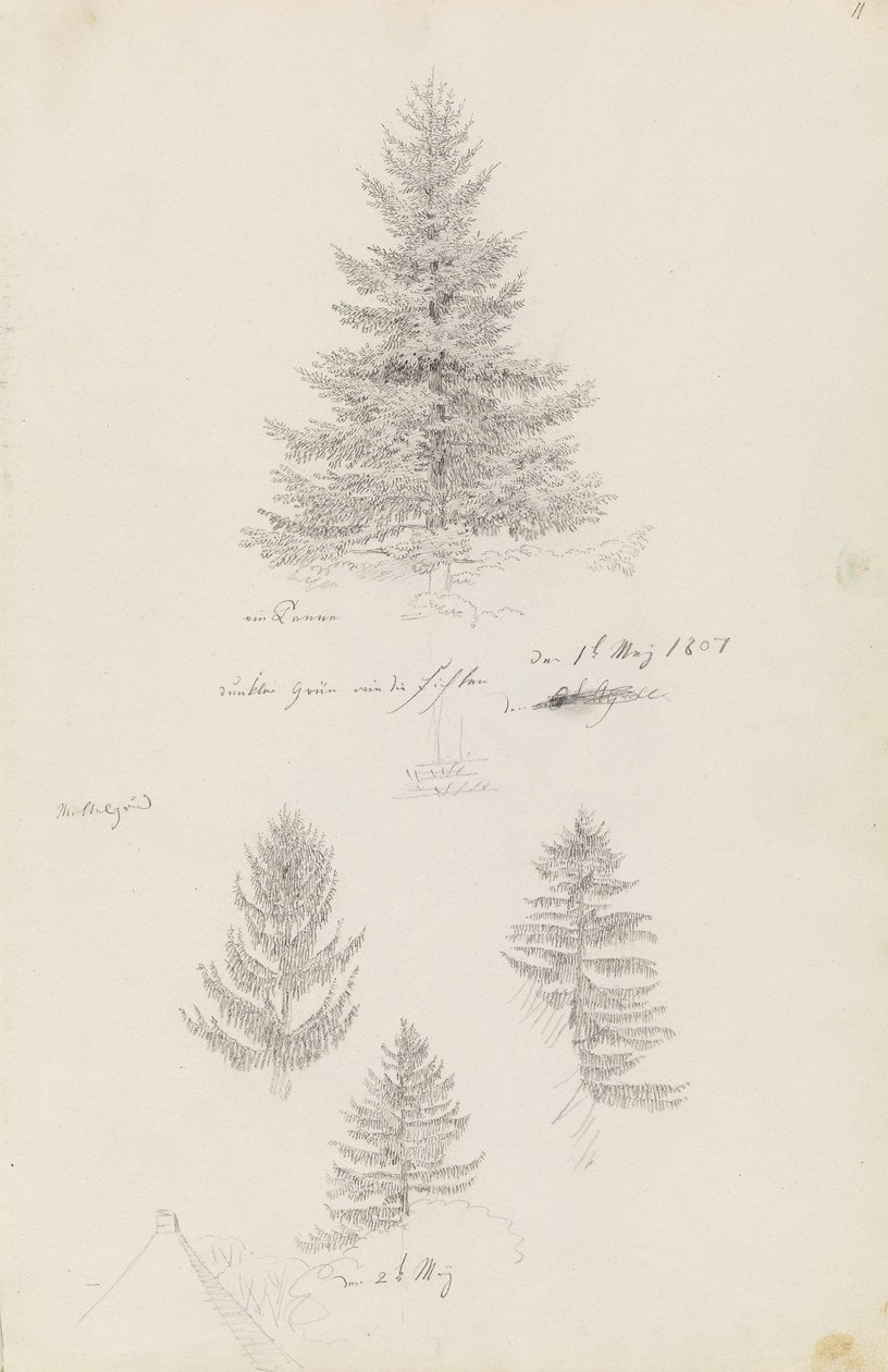 Tanne und drei Studien von Fichten(Tanne und drei Studien von Fichten )Caspar David Friedrich |