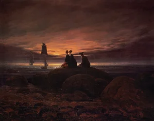 Mondaufgang am Meer von Caspar David Friedrich. Verfügbar als Kunstdruck auf Leinwand, Fotopapier, Aquarellkarton, Naturpapier oder Japanpapier.