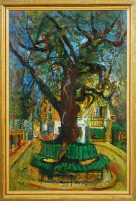 bank · sitzgelegenheit · baum · cottage · dorf · expressionismus · haus · hütte · jüdische · kunst · kunst · landschaft · litauische · kunst · möbel · solitär · baum · geographie · alpes-maritimes · cote · azur · frankreich · südfrankreich · vence · technik · gemälde · malerei · Baum · Vence · / akg-images