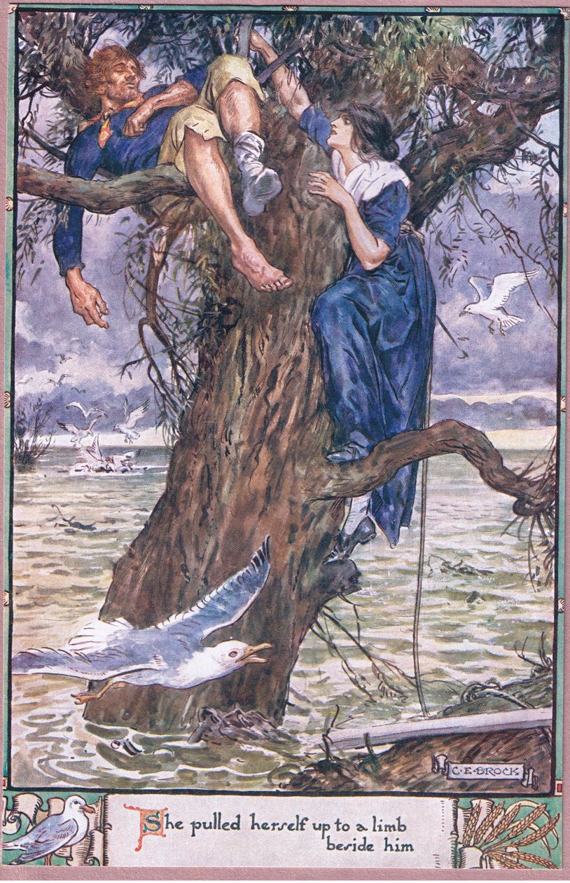 baum · mädchen · baum · geklettert · grizzelte · mann · gefangen · flut · kostüme · 0 / Bridgeman Images