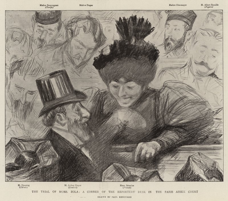 studie · mons zola · corner · reporterpult · paris assize court · master · bergougnan · zeit · meister dugas · meister obermayer · herr albert bataille · figaro · herr ducaing · debatten · arthur meyer · gaul · frau severine · schleuder · Private Collection / Bridgeman Images · / Look and Learn |