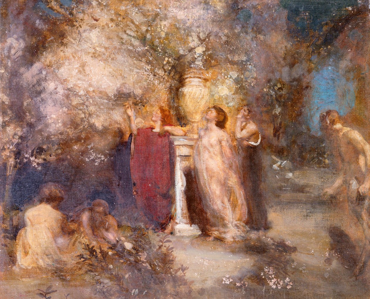 weiblich · landschaft · 20. jahrhundert · vorhänge · stehend · volle länge · 19. jahrhundert · klassisch · romantisch · urne · Private Collection / Bridgeman Images |