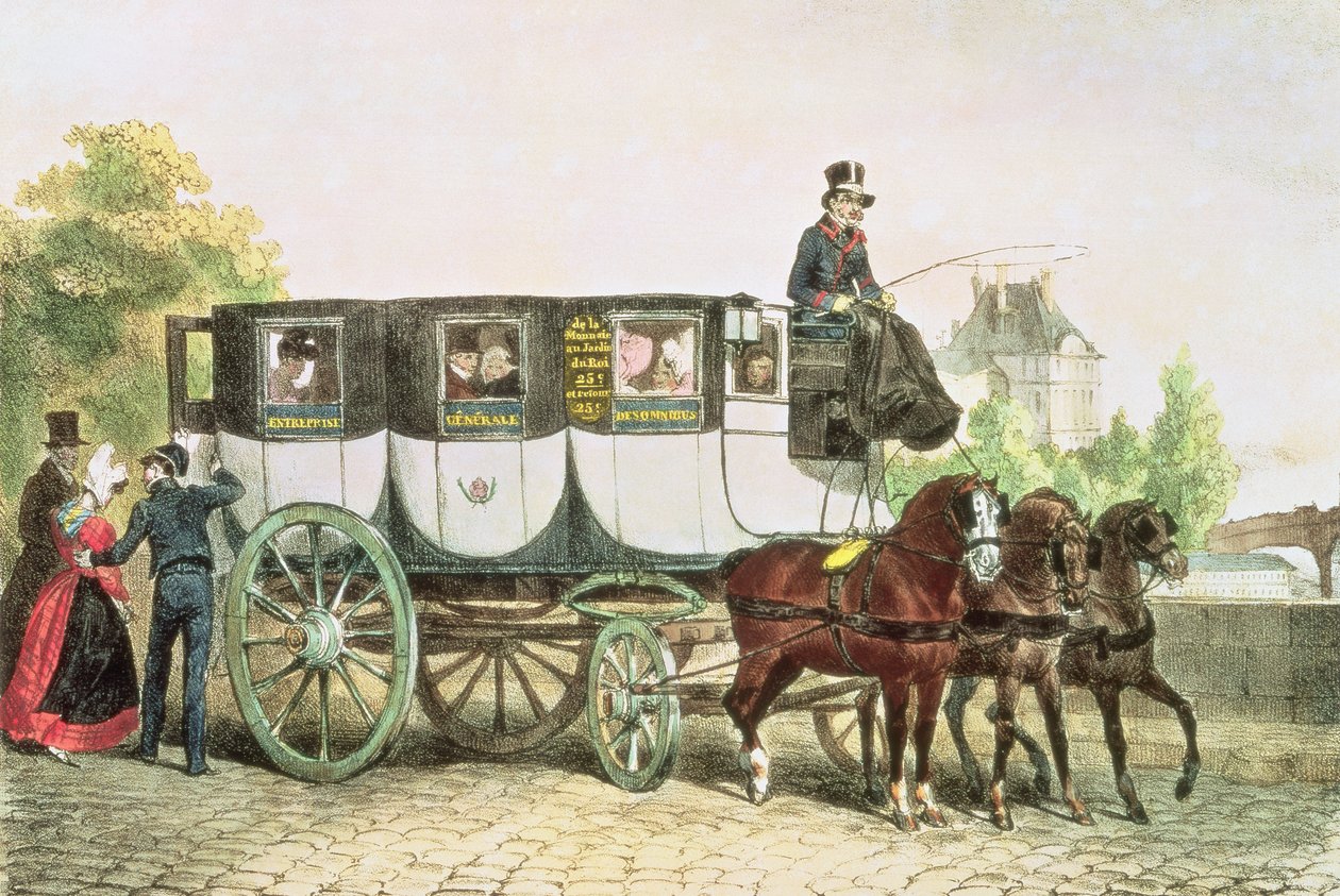 pferdekutsche · öffentliche verkehrsmittel · 25 rappen · fahrer · kutscher · passagiere · passagier · reisen · taxi · Musee de la Ville de Paris, Musee Carnavalet, Paris, France / Bridgeman Images |