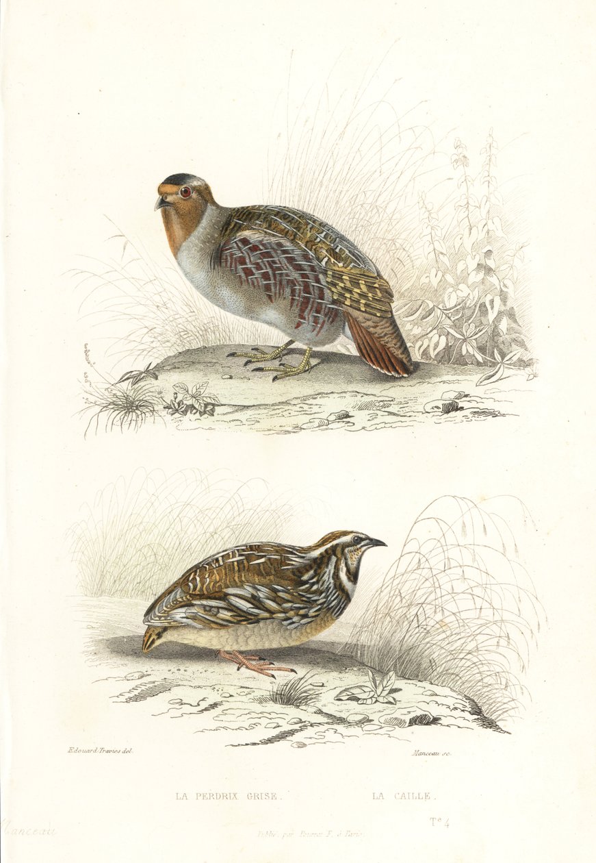 Rebhuhn und Wachtel(Grey partridge and common quail.)Edouard (after) Travies |
