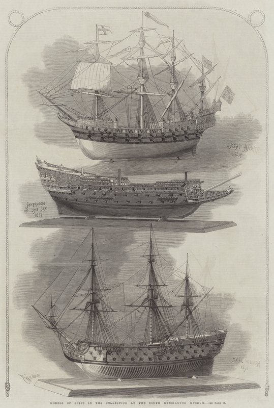 modelle von schiffen · sammlung · south kensington museum · großartiger harry · soveraigne · meere · royal william · schiffe · modellschiffe · victoria · albert museum · maritim · london · Private Collection / Bridgeman Images · / Look and Learn