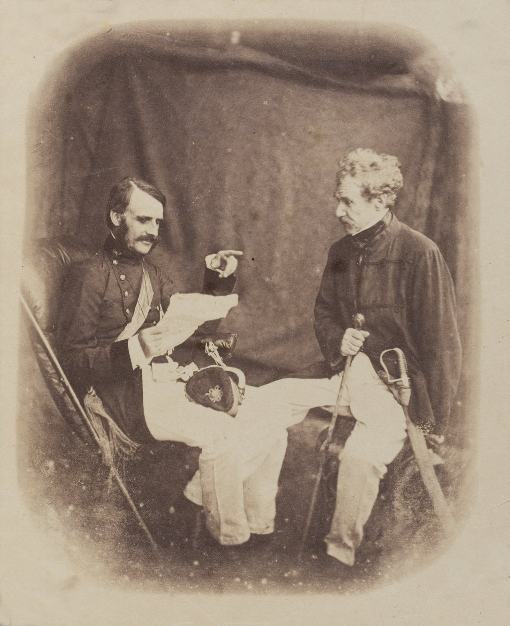 General Sir Colin Campbell und Generalmajor William Mansfield lesen Depeschen, ca. 1858(General Sir Colin Campbell and Major General William Mansfield reading dispatches, c.1858 )English Photographer |