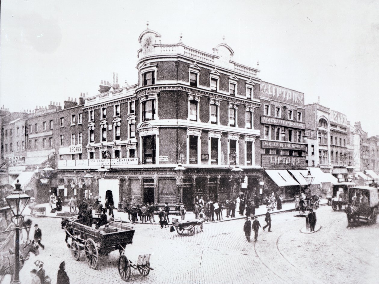 engel · straße · hauptstadt · stadt · kutsche · omnibus · karren · kopfsteinpflaster · kopfsteinpflaster · viktorianisch · lipton · läden · werbung · werbung · laden · lipton · architektur · Ecke · Oldtimer · Private Collection / Bridgeman Images |