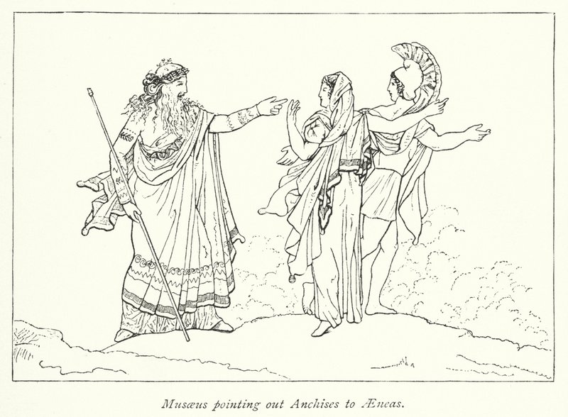 Musaeus zeigt Aeneas Anchises(Musaeus pointing out Anchises to Aeneas (litho))English School |