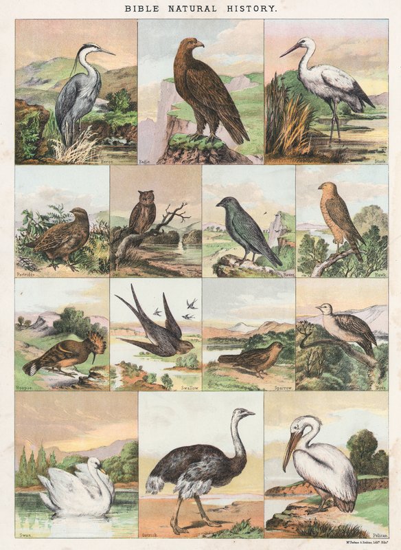 bibel · bibel · naturgeschichte der bibel · reiher · adler · storch · rebhuhn · eule · rabe · falke · wiedehopf · schwalbe · spatz · taube · schwan · strauß · pelikan · vögel der bibel · Private Collection / Bridgeman Images · / Look and Learn