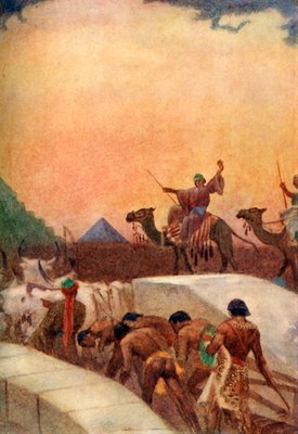 Steinblöcke für die Pyramiden ziehen(Hauling Blocks of Stone for the Pyramids (colour litho))English School |