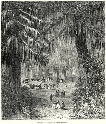 Zypressengärten von Chapultepec (Gravur) von English School. Verfügbar als Kunstdruck auf Leinwand, Fotopapier, Aquarellkarton, Naturpapier oder Japanpapier.