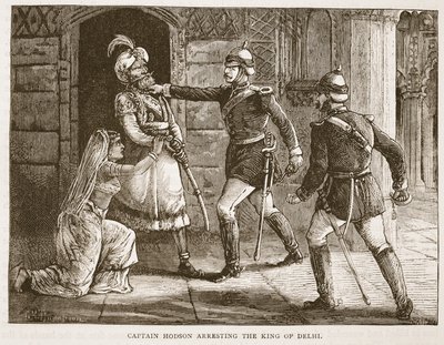 Kapitän Hodson verhaftet den König von Delhi(Captain Hodson arresting the king of Delhi (engraving))English School |