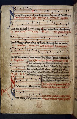(Harley MS 978 f.11v Musical Miscellany, from 'Collection of poems including fables and musical, calendrical, and medical texts' (ink & colour on vellum))