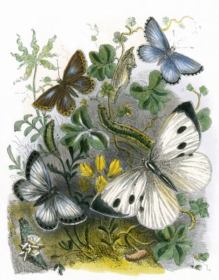 das schmetterlings-vivarium · schmetterlinge · raupen · insekten · natur · blumen · entomologie · wasser · puppen · puppen · flügel · schmetterlinge · sphinx ligustri · motten · käfer · eier · metamopfer · Private Collection / Bridgeman Images · / Look and Learn