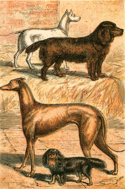 naturgeschichte · tiere · terrier · spaniel · windhund · könig charles spaniel · Private Collection / Bridgeman Images · / Look and Learn |