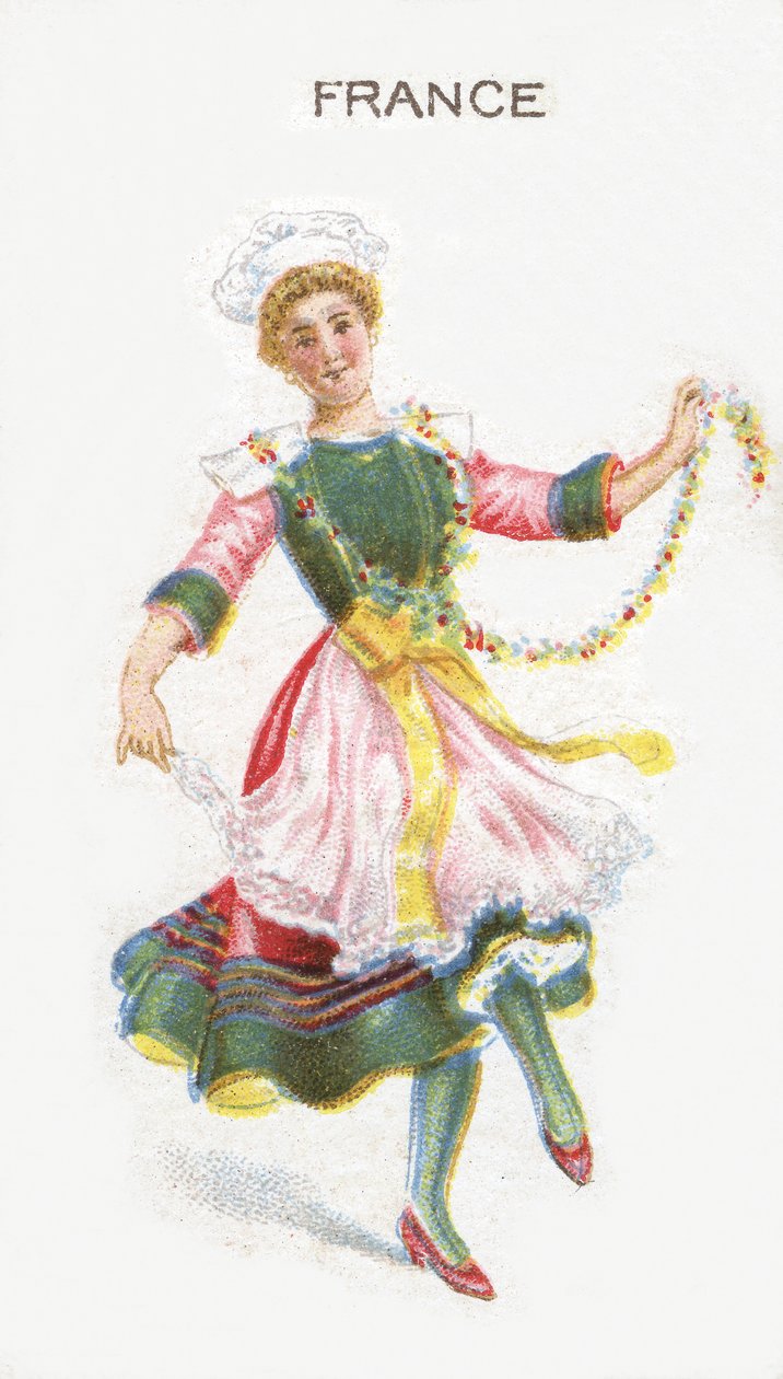 frankreich · französisch · tanzen · mädchen · frau · tänzerin · tanz · darstellen · symbol · symbolisch · allegorie · werbung · werbung · werbung · zigarettenkarte · karte · vintage-karte · jahrgang · lächeln · schal · motorhaube · tracht · fröhlich · schürze · spitze · fröhlich · glücklich · lebhaft · lebhaft · lebensfreude · freude · spaß · tänzer · großer krieg · 1914-18 · weltkrieg · erster weltkrieg · erster · moral · auftrieb · auftrieb · ermutigung · moral · Private Collection / Bridgeman Images |