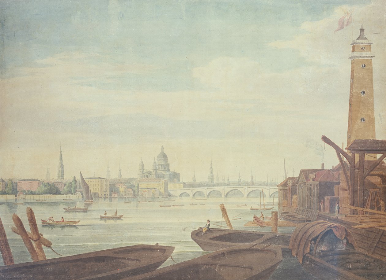 Ansicht des Tempels, St. Paul's und Blackfriars Bridge, von Maltby's Shot Manufactory, 1760(View of the Temple, St. Paul's, and Blackfriars Bridge, from Maltby's Shot Manufactory, 1760 )English School |