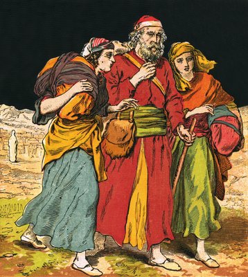 bibel · tochter · lot mit seiner frau und seinen töchtern · salz · Rückblick · Private Collection / Bridgeman Images · / Look and Learn