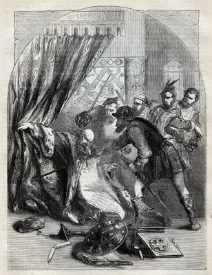 Tod von Kardinal Beaton, 29. Mai 1546 - Kardinal David Beaton (ca. 1494-1546), Erzbischof von St. Andrews, ermordet während der schottischen Reformation - Gravur aus „History of England“ von Cassell Petter & Galpin, London (1890)(Death of Cardinal Beaton, 29th May 1546 - Cardinal David Beaton (c1494-1546), Archbishop of St. Andrews, murdered during the Scottish Reformation - engraving from “” History of England”” by Cassell Petter & Galpin, London (1890))English School |