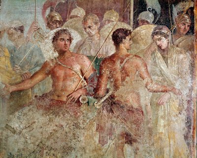 Haus des Menander, Pompeji (Unesco-Welterbeliste) Odysseus und Diomedes erkennen Achilles, verkleidet als die weibliche Pyrrha, unter den Töchtern des Lykomedes in Skyros, aus Pompeji (Fresko) Achilles auf Skyros Fresko, das das Treffen von Priamos, Menelaos und Helena sowie Arisace, die Kassandra verfolgt, zeigt, aus dem Haus des Menander, Pompeji, Kampanien, römische Zivilisation Fresko, Haus des Menander, Pompeji (UNESCO-Welterbestätte) Fresko, das die Begegnung zwischen Priamos, Menelaos und Helena im Königspalast, Pompeji, Kampanien, römische Zivilisation darstellt Die Schmiede des Vulkan, aus Haus VII, Pompeji, ca. 50-79 n. Chr. Iphigenie in Tauris Römische Kunst: Die Hochzeit von Zeus und Hera auf dem Berg Ida. Römisches Fresko aus dem Haus des tragischen Dichters in Pompeji. 1. Jahrhundert n. Chr. Neapel, Museo Archeologico Nazionale Dido von Aeneas verlassen Ankunft von Io in Ägypten - Fresko Fresko, das Iphigenie in Tauris darstellt, aus dem Haus des Pinario Ceriale in Pompeji, Kampanien, römische Zivilisation Meleager und Atalanta, Pompeji Wandmalerei, die den Triumph des Bacchus darstellt, aus dem Haus des Marcus Lucretius Fronto, Pompeji, Kampanien, römische Zivilisation Achilles, als Frau verkleidet, wird von Odysseus unter den Töchtern des Lykomedes auf Scyros erkannt Fresko von Pompeji. 1. Jahrhundert n. Chr. Dim. 145,5x137,5 cm Neapel, Nationales Archäologisches Museum - Römische Kunst. Heftiger Kampf zwischen den Mens Fresko der römischen Oberschicht, die das Leben in Luxus genießt, entdeckt in Pompeji. Pompeji, Italien. Fresko, das Venus beim Fischen darstellt, aus dem Haus der Goldenen Amorinen, Pompeji, Kampanien, Römische Zivilisation Odysseus und Diomedes erkennen Achilles, verkleidet als die weibliche Pyrrha, unter den Töchtern des Lykomedes auf Skyros Orestes und Pylades in Tauris Herkules als Sklave der Königin Omphale (Fresko) Ein Bankett, wahrscheinlich die Königin von Numidien Sophonisba, die Selbstmord begeht, indem sie Gift trinkt (Fresko) Fresko darstellend Iphigenie in Tauris, Detail (Mägde), aus dem Haus des L. Caecilius Giocondus in Pompeji, Italien Römische Kunst: „Meleager und Atalanta“ Römisches Fresko aus dem 1. Jahrhundert n. Chr. aus Pompeji. Neapel, Nationales Archäologisches Museum - Römische Kunst: Meleager und Atalanta. Römisches Fresko aus dem 1. Jahrhundert n. Chr. aus Pompeji. Nationales Mars und Venus. Aus dem Haus des Citharisten, Pompeji Römische Wandmalerei eines Abendessens, Pompeji, Italien Römische Kunst: „Outdoor-Bankettszene“ (Römisches Fresko aus dem Haus des Triclinium, Pompeji, 40-60 n. Chr.) Die Hochzeit von Alexander (Ares) und Stateira (Aphrodite), Fresko in Regio 6 Insula Occidentalis 39, Pompeji (UNESCO-Welterbeliste) Thetis und Hephaistos, Fresko im 3. pompejanischen Stil, entdeckt in Pompeji (UNESCO-Welterbeliste)