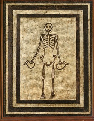 Skelett eines Mundschenks Römisches Mosaik eines Skeletts, 1. Jahrhundert St. Issui Gnothi seauton (Erkenne dich selbst, Memento Mori Mosaik aus Ausgrabungen im Kloster San Gregorio in Rom, mit dem griechischen Motto 3. Jahrhundert v. Chr.) Museo Nazionale Romano (o delle Terme) Rom Römische Kunst: Memento mori, Symbole des Lebens und des Todes (Mosaik aus Pompeji, 2. Stil) Liegendes Skelett mit der Beschriftung Schädel, Symbol des Todes, umgeben von symbolischen Objekten: ein Schmetterling für die fliegende Zeit, ein Glücksrad Junge Römer bei körperlichen Übungen. Sie tragen einen Lendenschurz um die Nieren und ein Strophium (Vorläufer des BHs) auf der Brust. Römisches Mosaik des 3. - 4. Jahrhunderts aus der Villa del Casale, Piazza Armerina (Sizilien). Ein schwarzer Fischer aus Antakya Skelett mit einer Schaufel Tänzerin, Mosaik im antiken Hafen von Kos, Insel Kos, Griechenland, römische Zivilisation Römische Kunst: Gladiator. Bodenmosaik aus den Caracalla-Thermen Tod, Faksimile einer Tarotkarte aus dem Krateros, ca. 320 v. Chr. (Detail) Geist bewacht Kali-Tempel, Dakshin Kali, Nepal Grabplatte Tod mit Stundenglas (Detail) Der Totentanz: Tod am offenen Grab, 1490 Boden einer Basilika Plakette mit Allegorie des Todes Fresko in der Kirche von S. Giacomo, Temeno/Strada Vino, Südtirol, Italien Alexander der Große und Hephaistion bei der Löwenjagd (Detail) Mosaik von Tanit, karthagisch, 3. Jahrhundert v. Chr. Herkules und die lernäische Hydra, vom Boden des Ein Philosoph Tafel III Dissektion, aus Anatomische Tafeln, von John Banister (1540-1610) Ms Hunter 364 Tafel IV, aus Anatomische Tafeln, von John Banister (1540-1610)