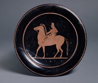 Attische rotfigurige Schale, die einen Reiter auf einem Pferd darstellt (Keramik)(Attic red-figure cup depicting a rider on horseback (ceramic))Euphronios |