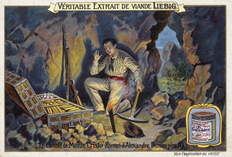 karte · lehrreich · 19. jahrhundert · französisch · literatur · roman · abenteuer · der graf von monte cristo · alexandre dumas · entdeckung · begraben · schatz · brust · edmond dantes · höhle · Private Collection / Bridgeman Images · / Look and Learn |