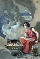 lehrreich · karte · louit · cumaean sybil · sybil · religion · heidentum · prophetin · priesterin · italien · griechisch · altgriechisch · cumae · apollonisches orakel · prognose · feuer · schlange · höhle · römisch · antikes rom · seher · Private Collection / Bridgeman Images · / Look and Learn