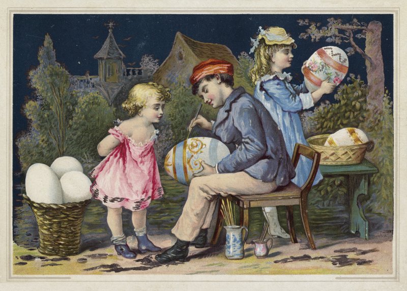 ostern · osterei · kinder · gemälde · dekorieren · gemalt · verziert · dekoration · junge · mädchen · Private Collection / Bridgeman Images · / Look and Learn |
