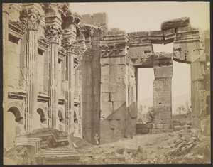Detail des Pronaos des Bacchustempels in der archäologischen Zone von Heliopolis oder Baalbek, antike syrische Stadt, heute Libanon(Detail of the pronaos of the Temple of Bacchus, in the archeological zone of Heliopolis or Baalbek, ancient Syrian city, now Lebanon)Félix Bonfils |