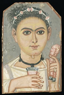 Junge mit einer Blumengirlande im Haar, ca. 200-230(Boy with a Floral Garland in His Hair, ca 200-230)Fayum mummy portraits |