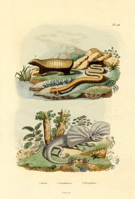 Chlamyphoridae ist eine Familie von Gürteltiere. Während Glyptodonten traditionell als Stammgruppen-Gürteltiere außerhalb der Gruppe betrachtet wurden, die moderne Gürteltiere enthält von Felix-Edouard Guerin. Verfügbar als Kunstdruck auf Leinwand, Fotopapier, Aquarellkarton, Naturpapier oder Japanpapier.